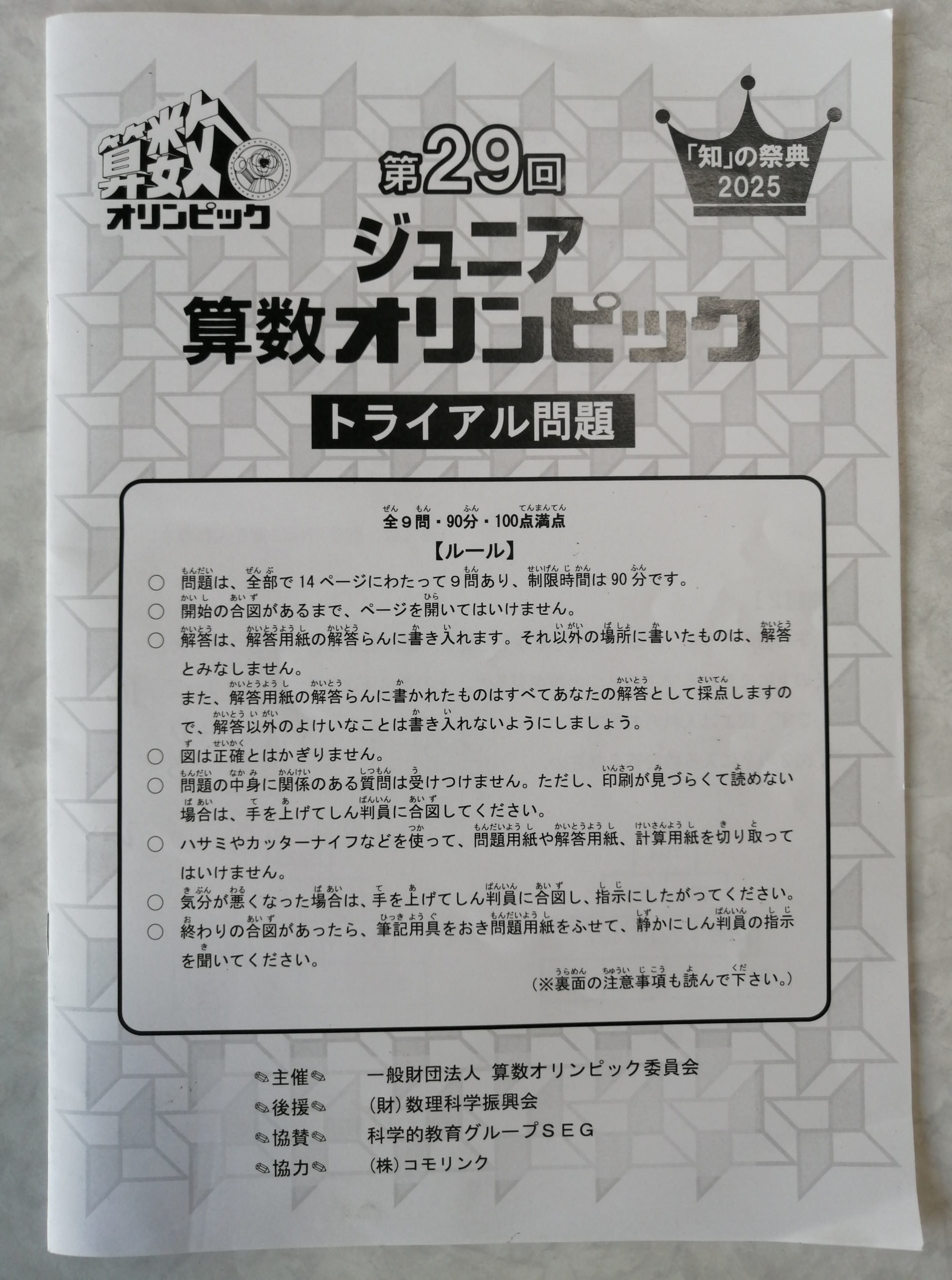 昨日息子の「ジュニア算数オリンピックトライアル(いわゆる予選)」の結果が出ました。予選通過していました。7月に「ジュニア算数オリンピックファイナル(いわゆる決勝)」があります。