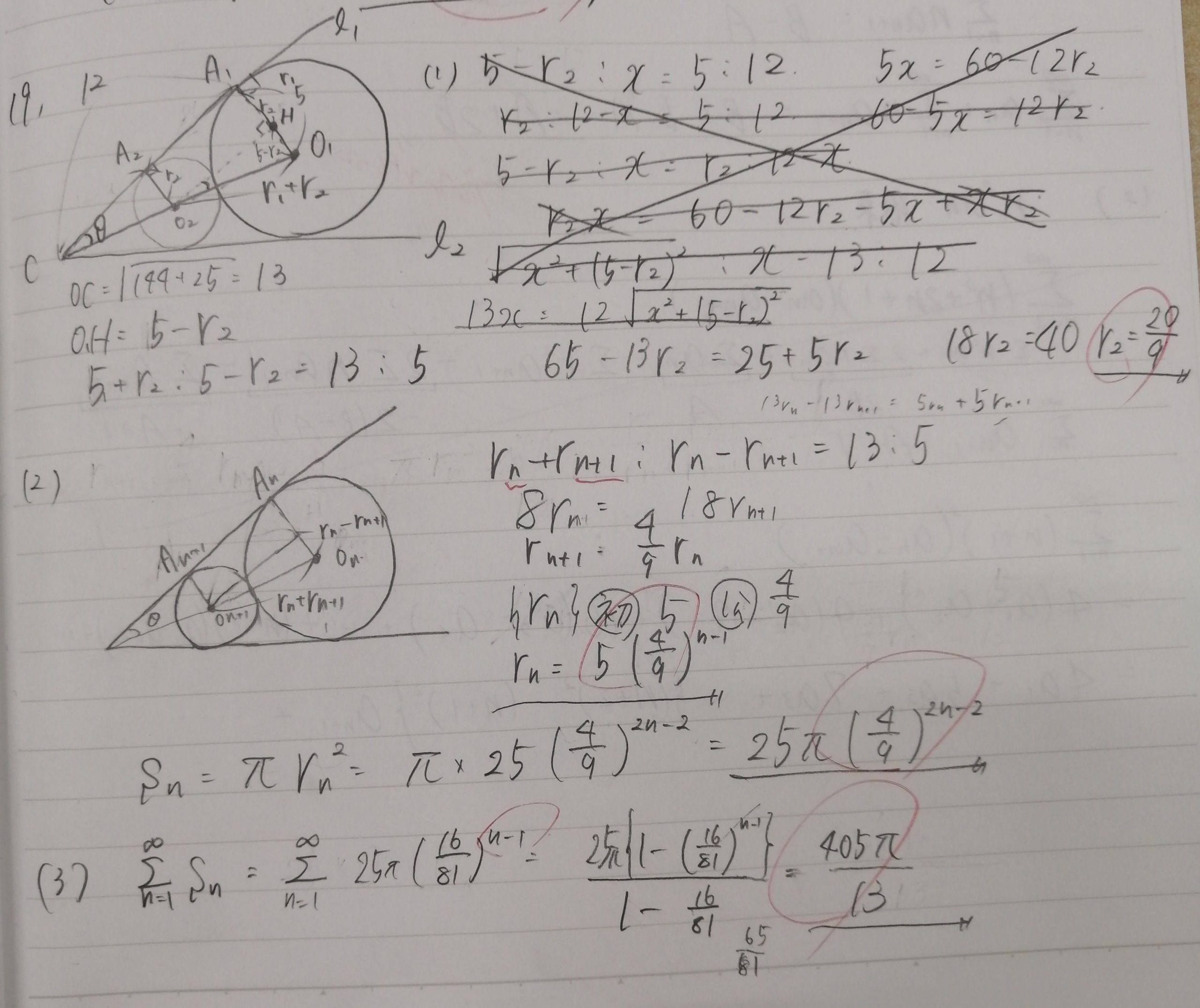 数Ⅲの極限の問題です。結局は等比数列になるのですが、それを示すために漸化式を用いています。この「漸化式」という考え方がなかなか身につかない数学初級者は多いかと思われます。受講初期の生徒の中には何の根拠も示さずに「等比数列になるのは当たり前でしょ」と、いきなり等比数列の形に持ち込む人がいるのですが、それでは減点されてしまいます。自明なこととそうでないことを判断する力も数学力のひとつです。