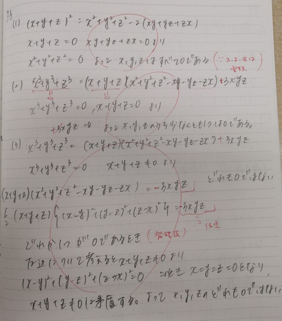 (1)(2)は標準レベルですが、(3)は難しいです。注目すべきはこの生徒の「答案の書きっぷり」です。添削していてすごく分かりやすいです。数学が苦手な生徒ほど、どこかで借りてきたような難しい表現を用いて解答を書こうとする傾向がありますが(それでいてその表現がその場に合っていない)、この生徒は自分の言葉で書いています。答案を読んでいて「この生徒はこの問題をしっかり理解できている」ということが伝わってきます。先週は予習の質がとてもよかったです。今週はそれに比べると少し物足りなかったです。来週はどうでしょうか。学年末考査テストが近づいています。学校の勉強と受験勉強をうまく両立させてほしいと思います。