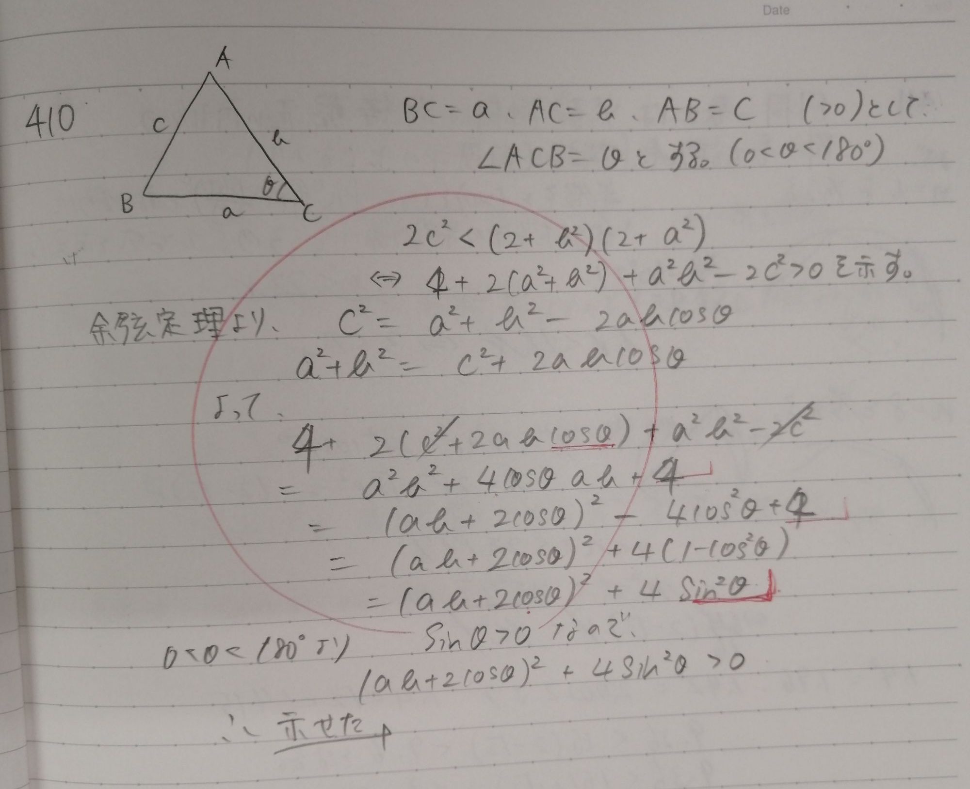 計算でこちょこちょ解いています。この生徒の特徴です。うまく式変形がはまるとあっという間に解けるのですが、そうでないときは一旦止まると動けなくなるときがあります。前者のときは全問合わせて9割を超えるのですが、そうでないときは7割程度でしょうか(それでもかなりいいかもしれませんが、この生徒が目指すレベルには及びません)。常に9割を超すために私の授業を受けています。この問題はまず定石を思いつくべきです。座標を設定して解く方法です。計算に少し時間がかかりますが、さまざまな問題で使える安定感のある解法です。学校の傍用問題集にも載っています。この生徒にも添削の後、伝えました。高いレベルになると「解ければいい」から脱却して「どう解くか」が重要になってきます。