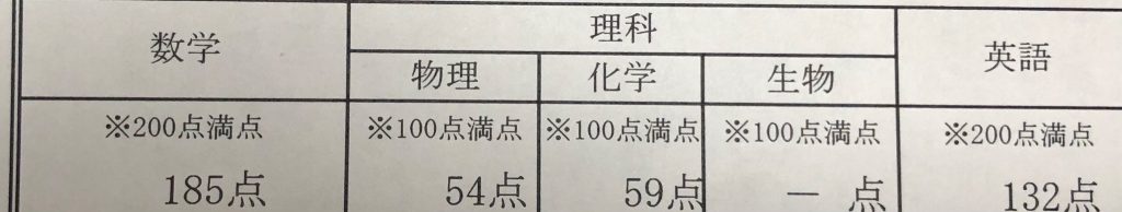 先日、卒業生から連絡がありました。大学から送られてきた得点開示の結果を教えてくれました。