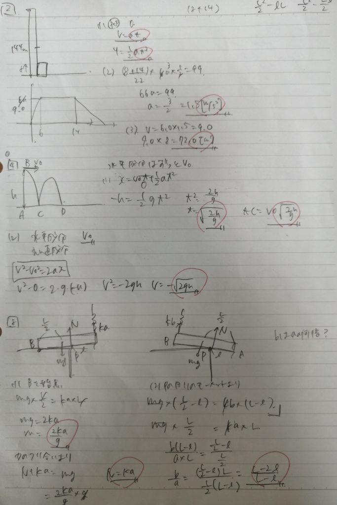 画像は先日行った復習テストの一部です。すべて入試問題です。全部で24問出題しました。非常にハードですね。すべて解き終わるのに2時間弱はかかったかもしれません。復習テストの条件として他塾と異なるのは「事前にテストのための準備を行わない」という約束をしていたことです。授業で問題を扱った週に入念に復習を行ってもらい、その後かなりの期間をあけて(約1~2ヵ月)復習テストを行っています。当然、生徒は解法の詳細は忘れています。基本原理の理解と思考力がしっかりしていなければ高得点は望めないでしょう。模試や本番の入試も同じですね。この生徒は高1から受講していますが、すでに「原子」分野を除いて基本原理はすべて説明が終わっています。学校では友だちから物理の質問を受けることもあるそうです。